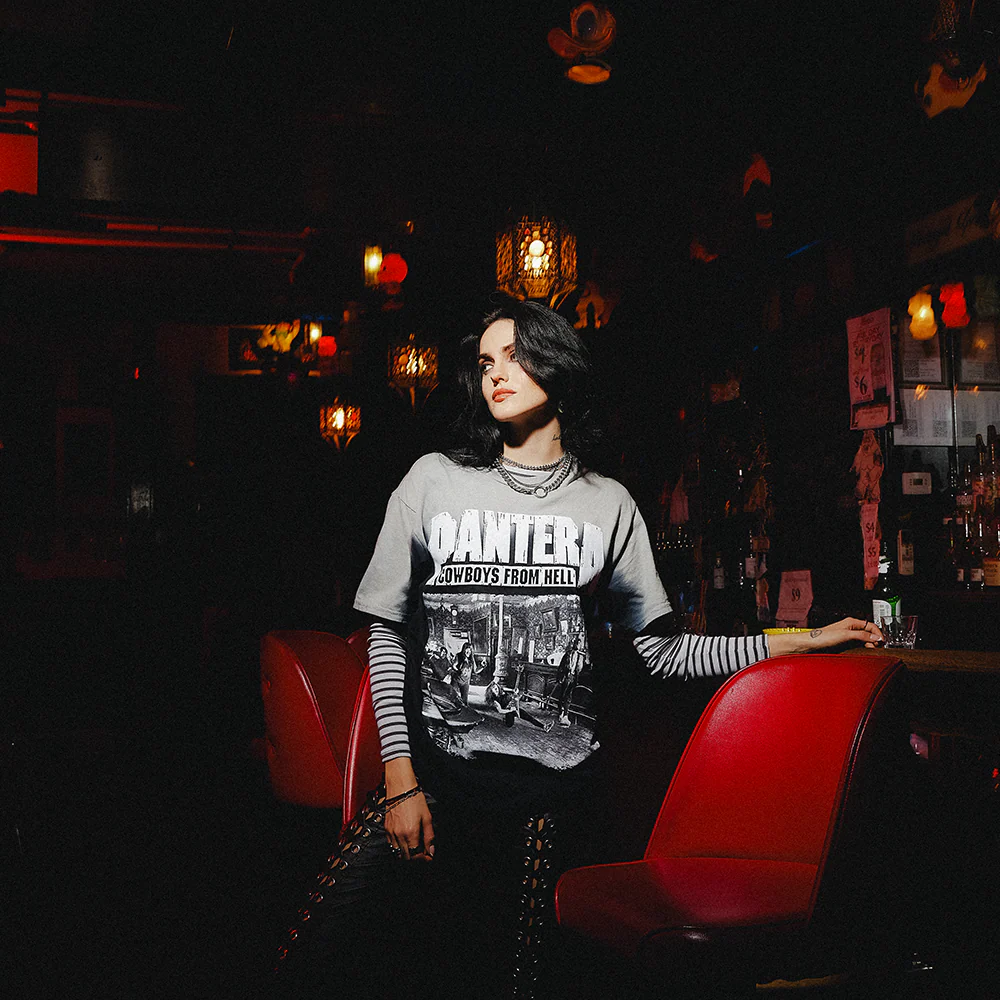 Gray and black dip dyed tee with Pantera logo and Cowboys From Hell album cover art printed on front.Â
