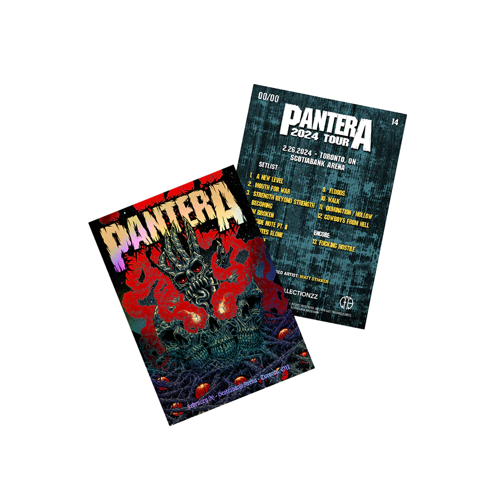 Premium 15 card set - each card includes poster art for each show from Pantera’s February 2024 North American tour. Each set comes in a sealed case with a holographic sticker of authenticity adhered.